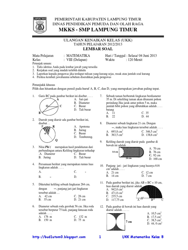 Soal Matematika Smp Kelas 8 Semester 1 Dan Pembahasannya ...